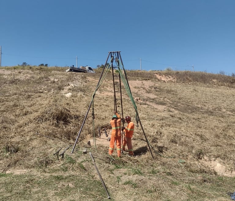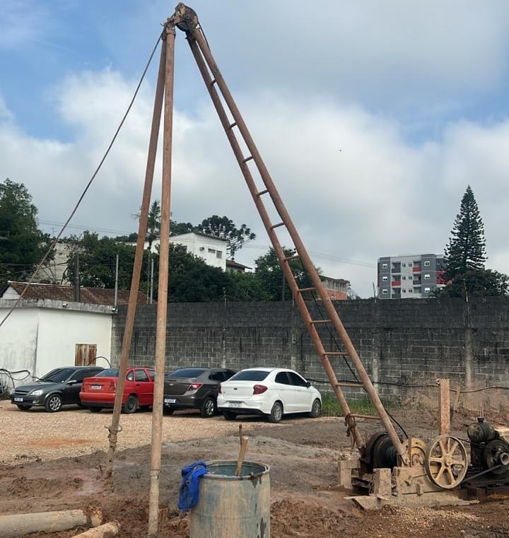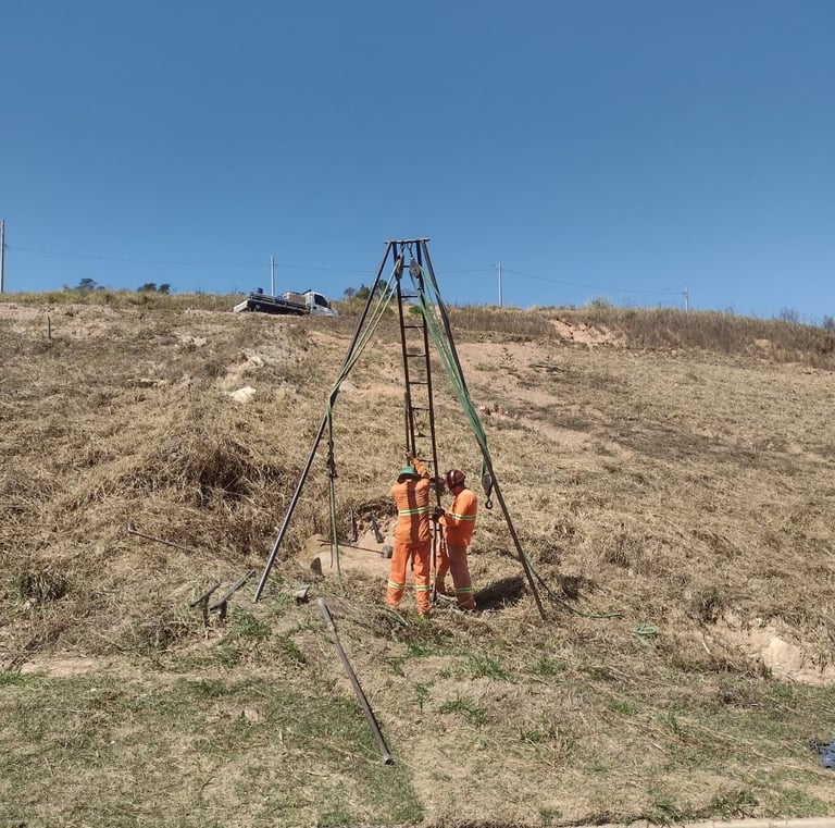 Sondagem SPT – Teste de penetração padrão para avaliação da resistência do terreno.